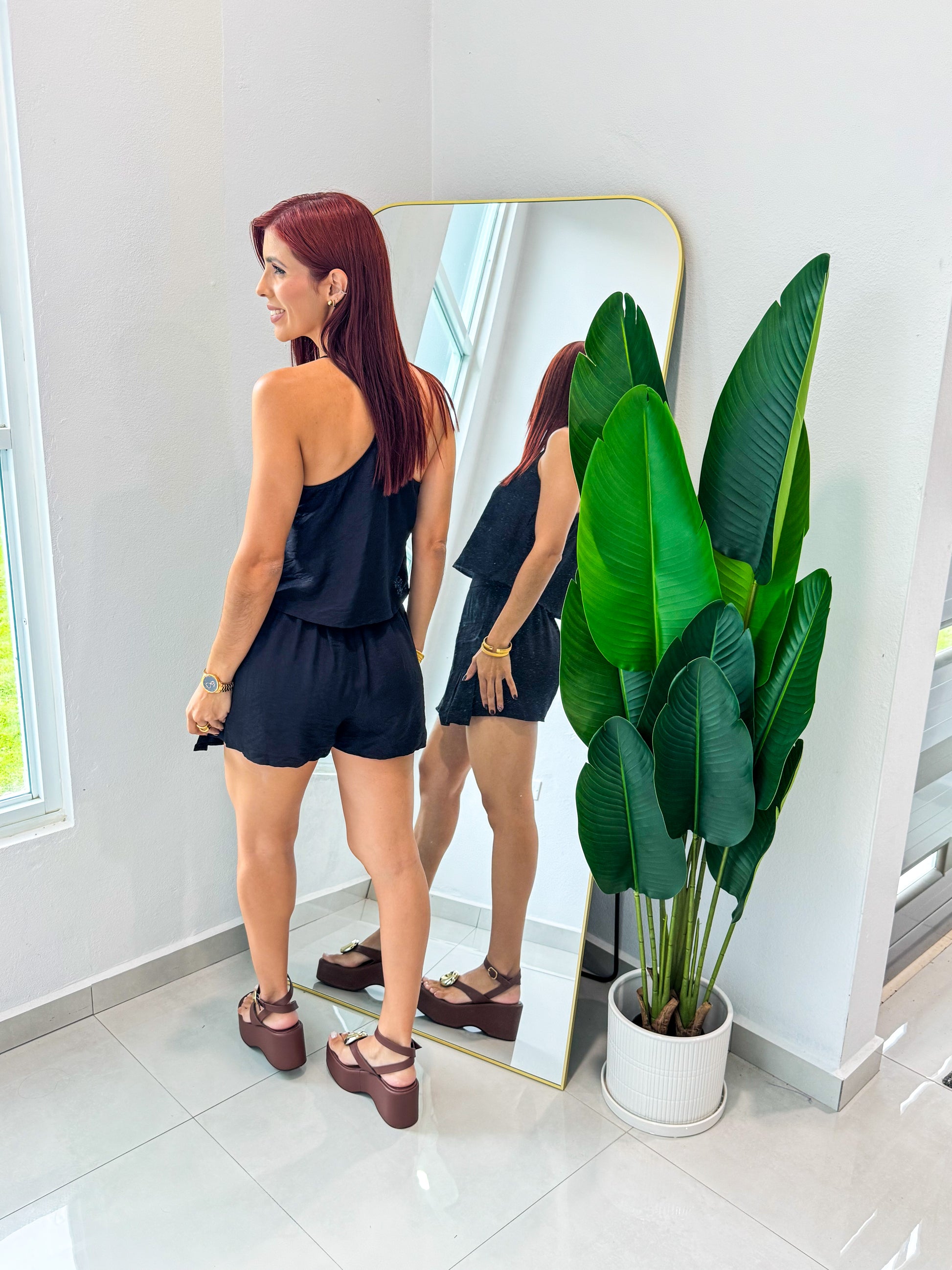 Corre al size. Modelo utiliza talla small. Tiene elástico en la cintura del skort. Top de manguitos ajustables. Si tus caderas definen talla, elige una talla más.