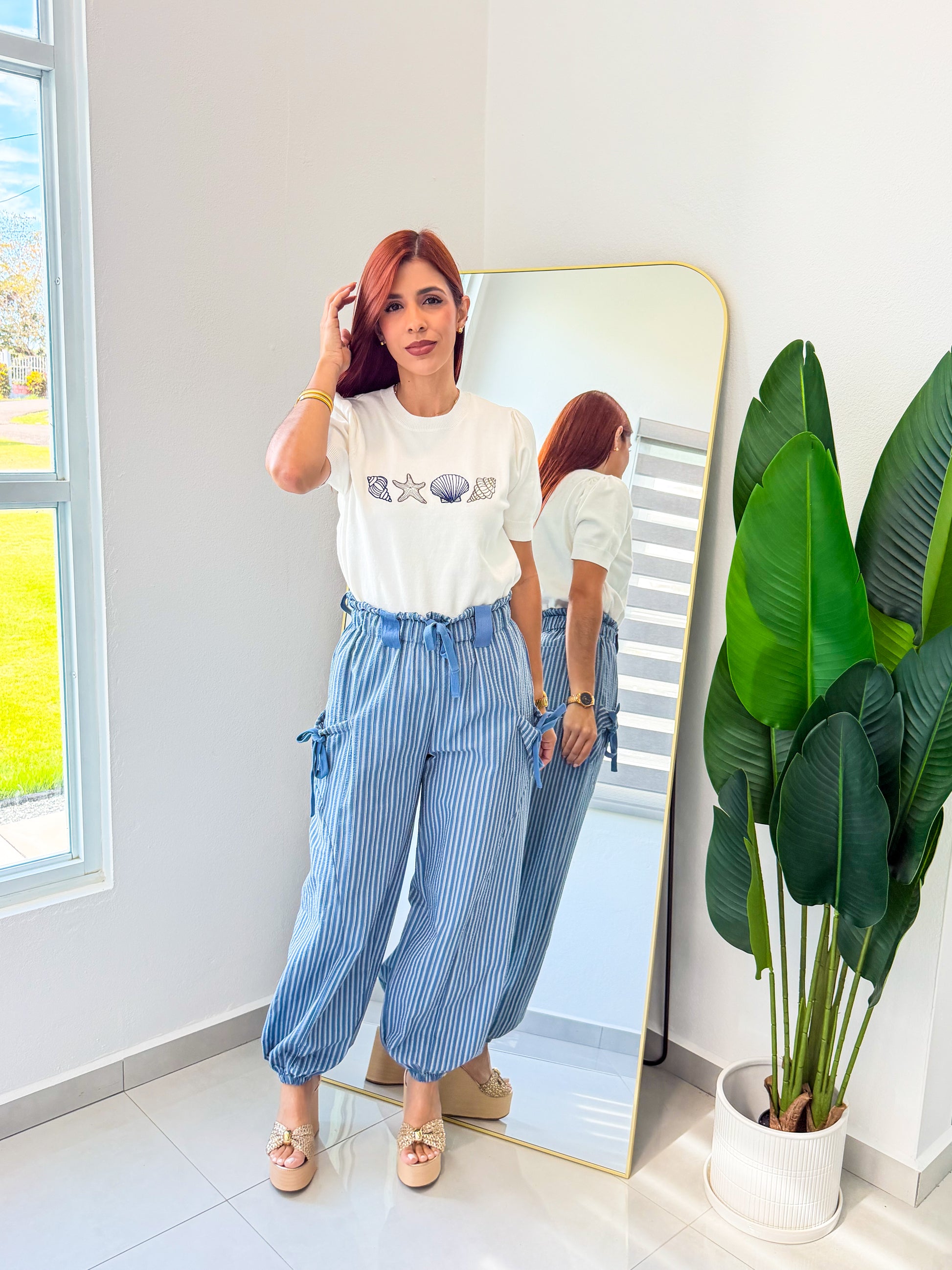 “Ana” Denim/White Stripe Jogger