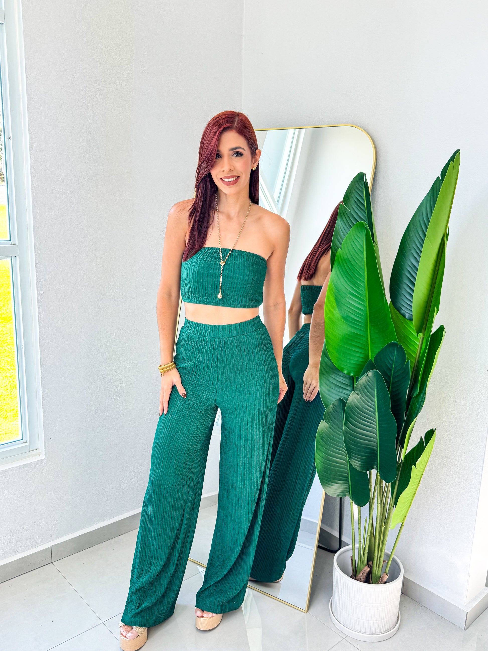 Corre al size. Modelo utiliza talla small. Tiene elástico en cintura del pantalón. Set completamente spandex. Crop top trae elástico en la parte de atrás.