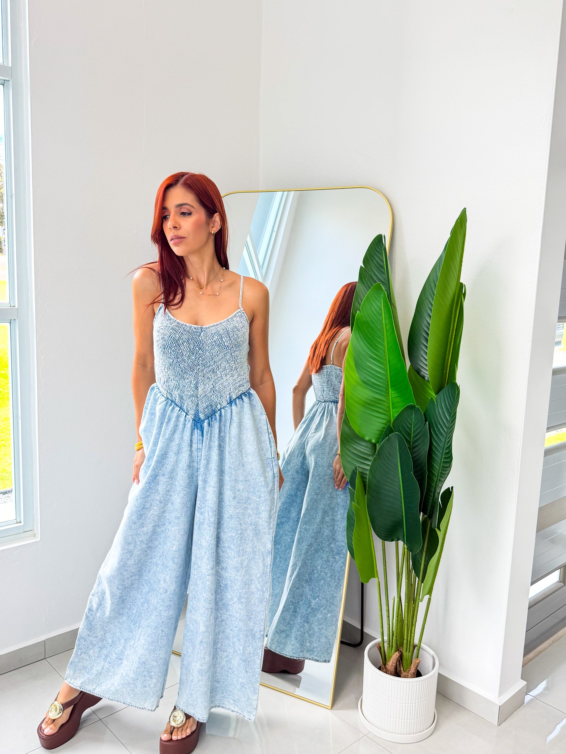 “Elizabeth” Light Denim Wash Jumpsuit