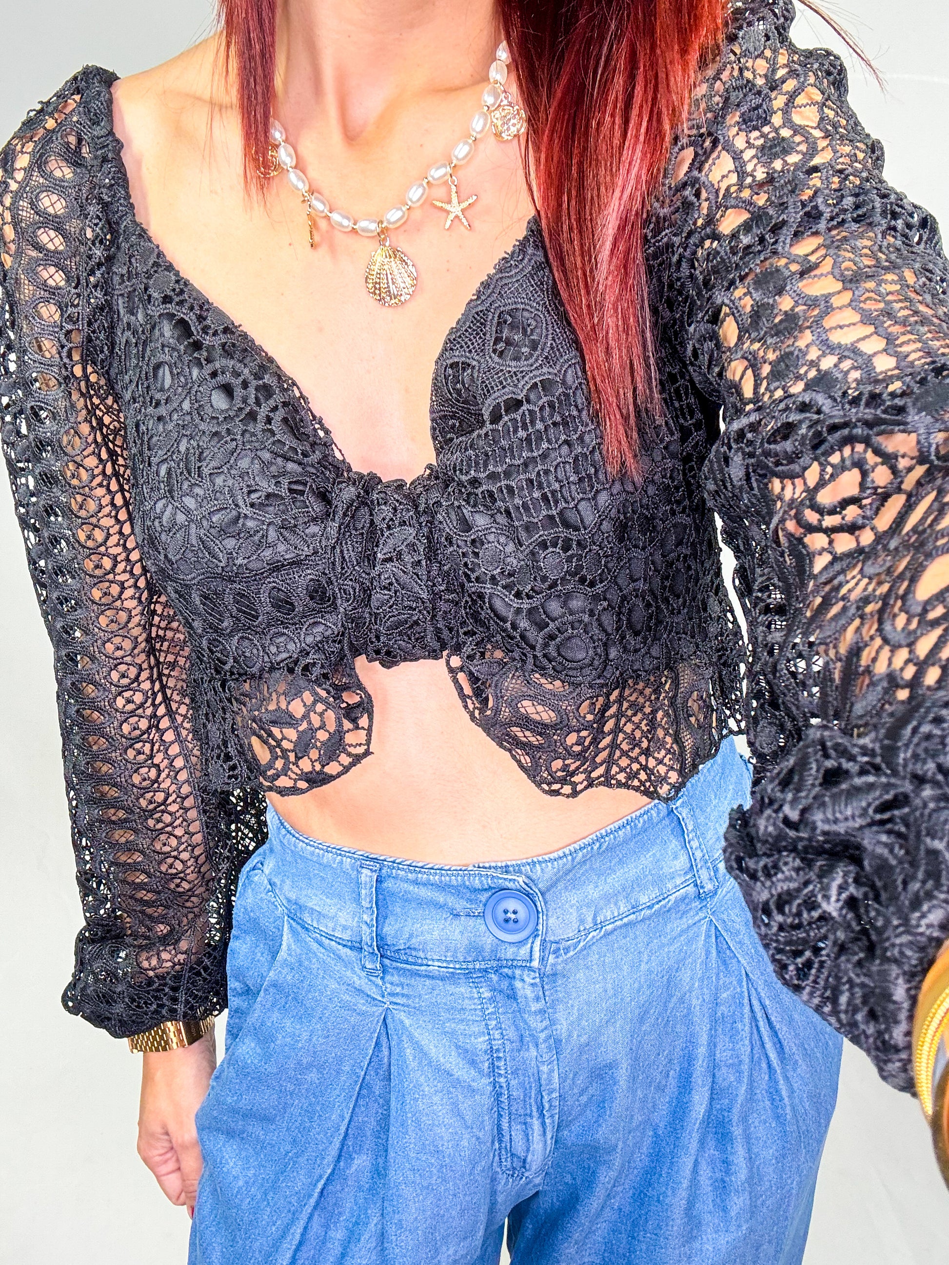 Corre al size. Modelo utiliza talla small. Top se ajusta al frente.