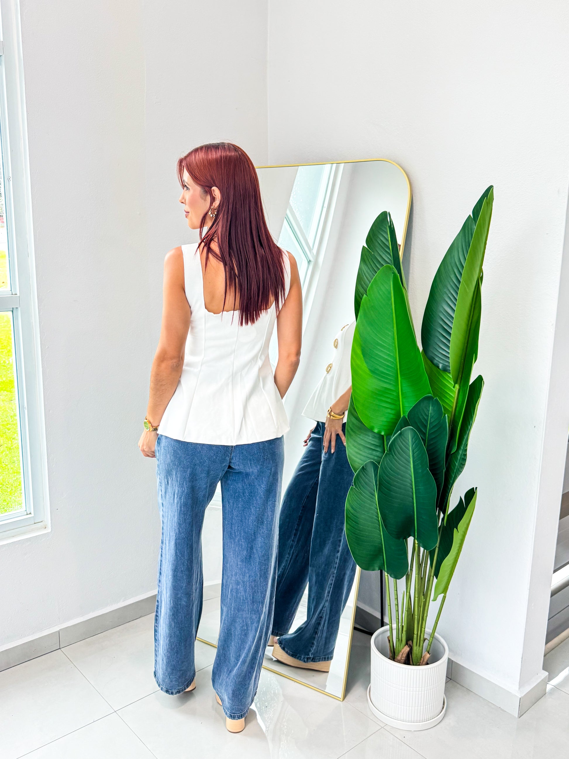 Medidas de la modelo: 34B busto, 28 cintura, 40 caderas y 5’7” estatura.