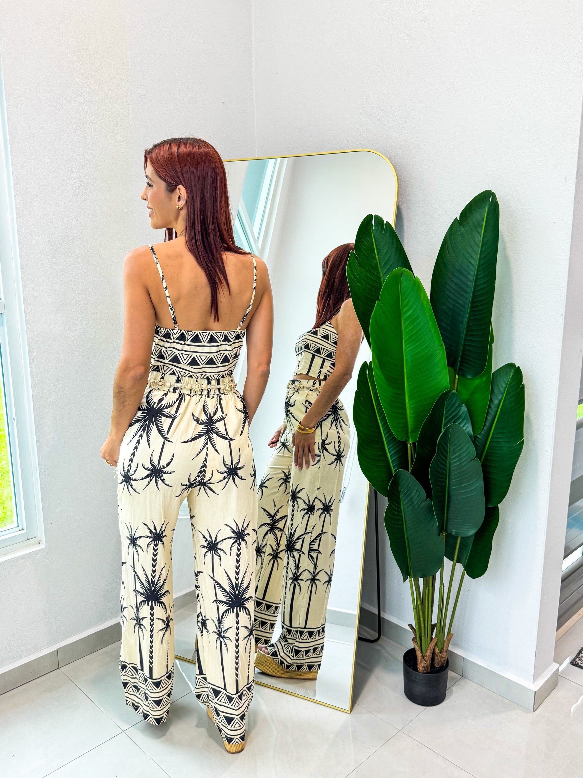 Corre al size. Modelo utiliza talla small. Elástico en cintura del pantalón e incluye correa. Top cierra con ziper al lado. Si tu cintura y/o cadera definen talla, elige una talla más.